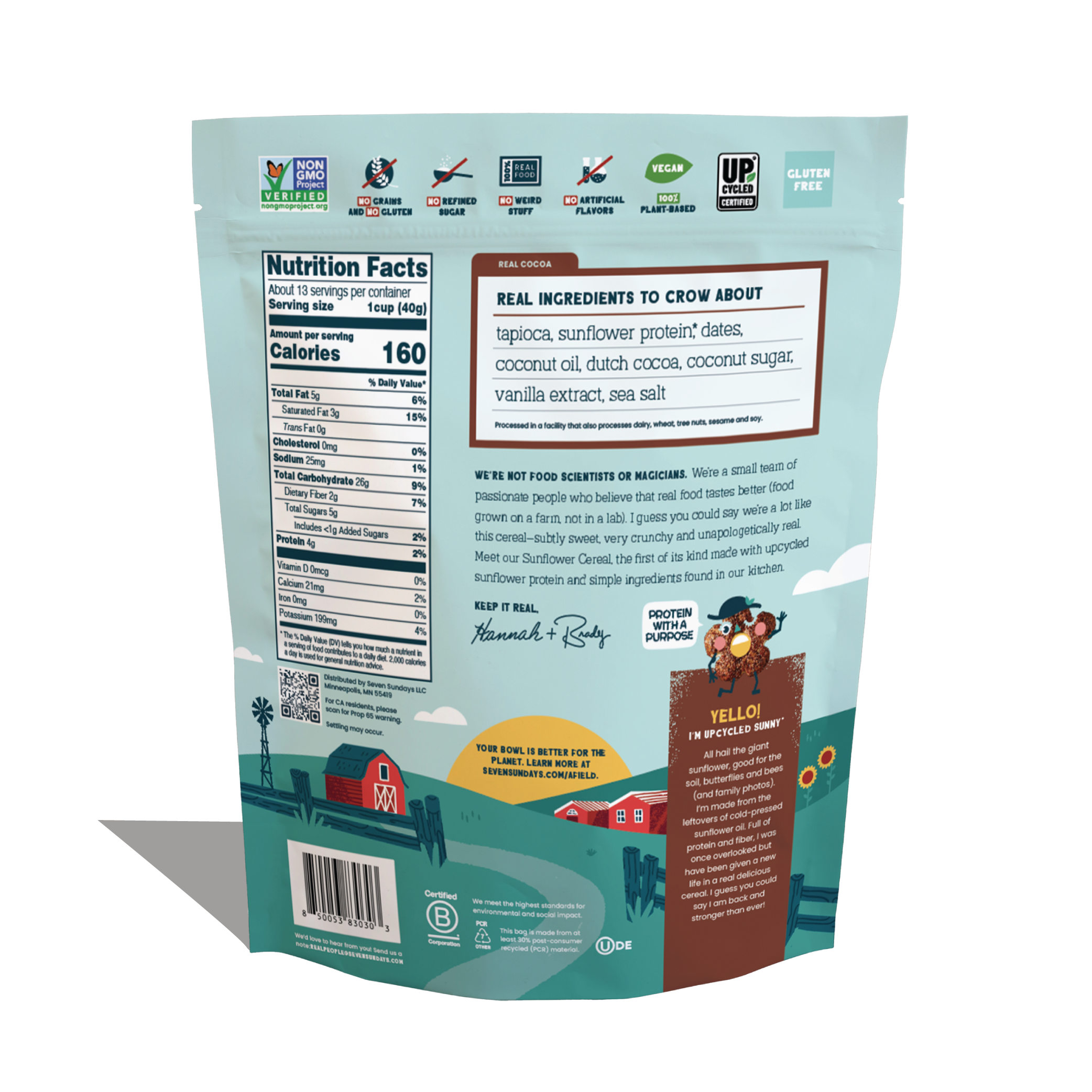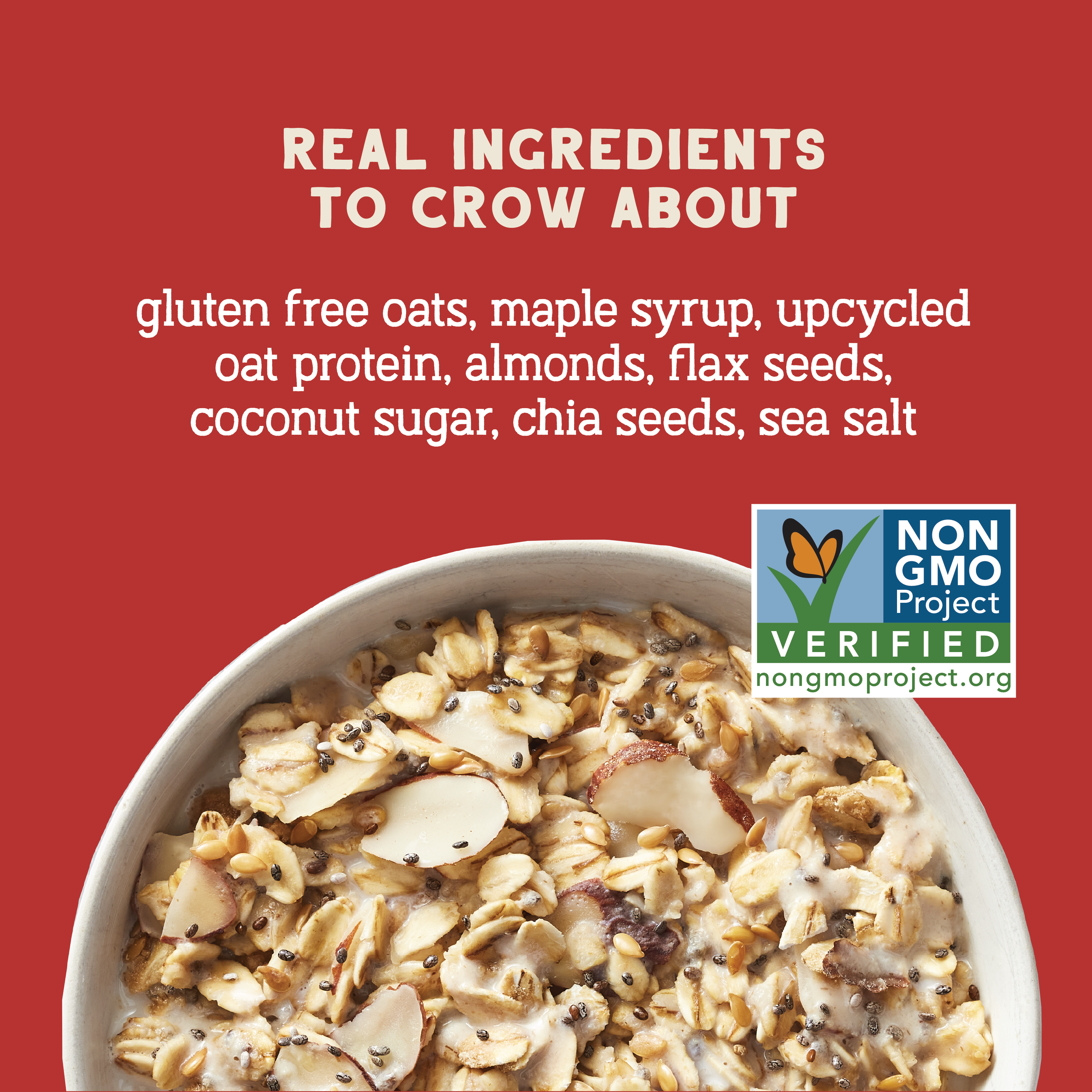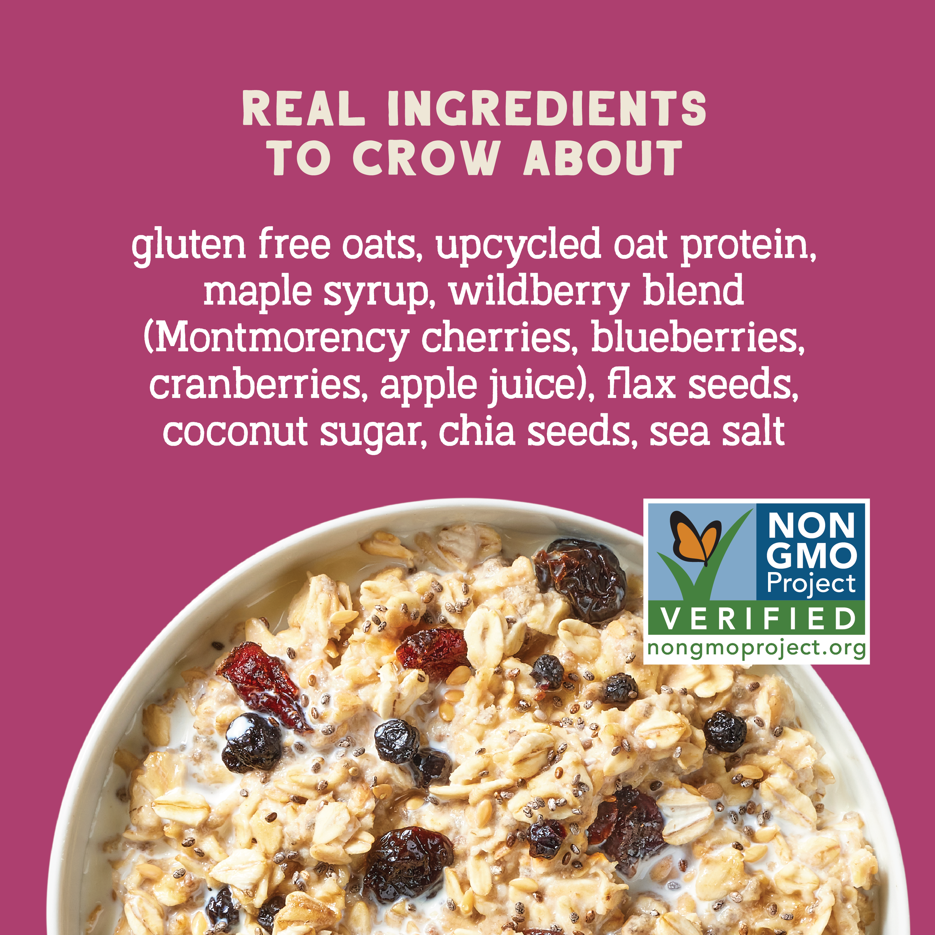 Our cereals are made with 100% real food—no artificial or “natural” flavors, no dyes or preservatives, no weird stuff ever!