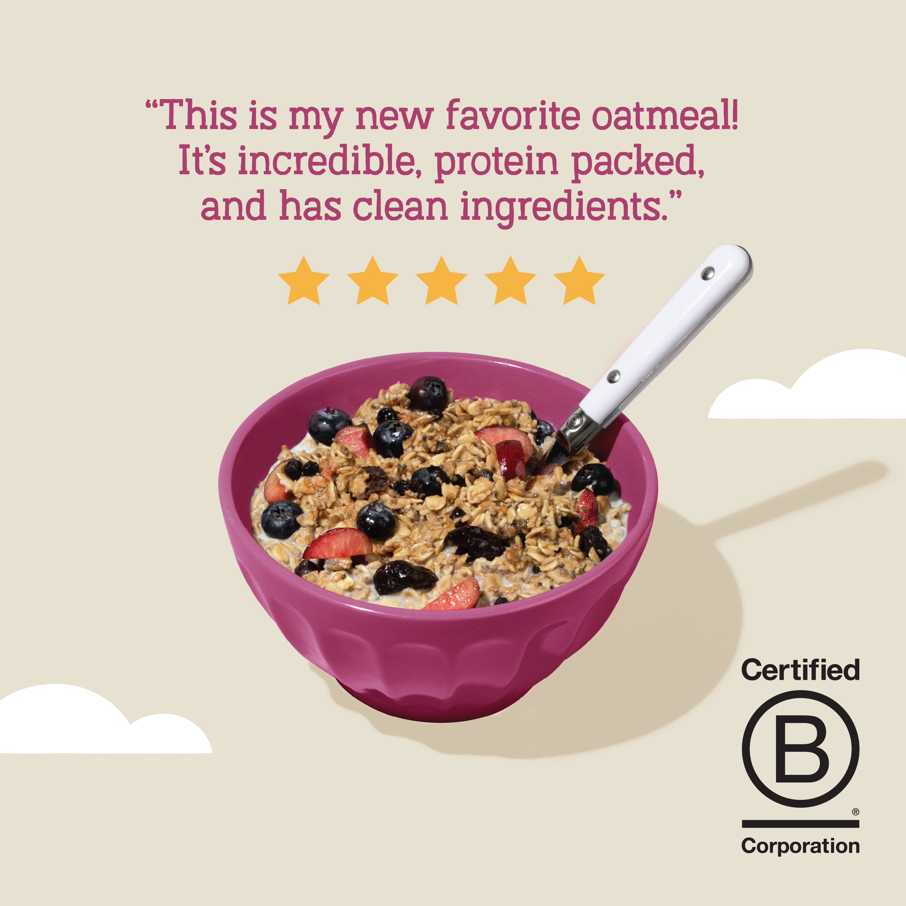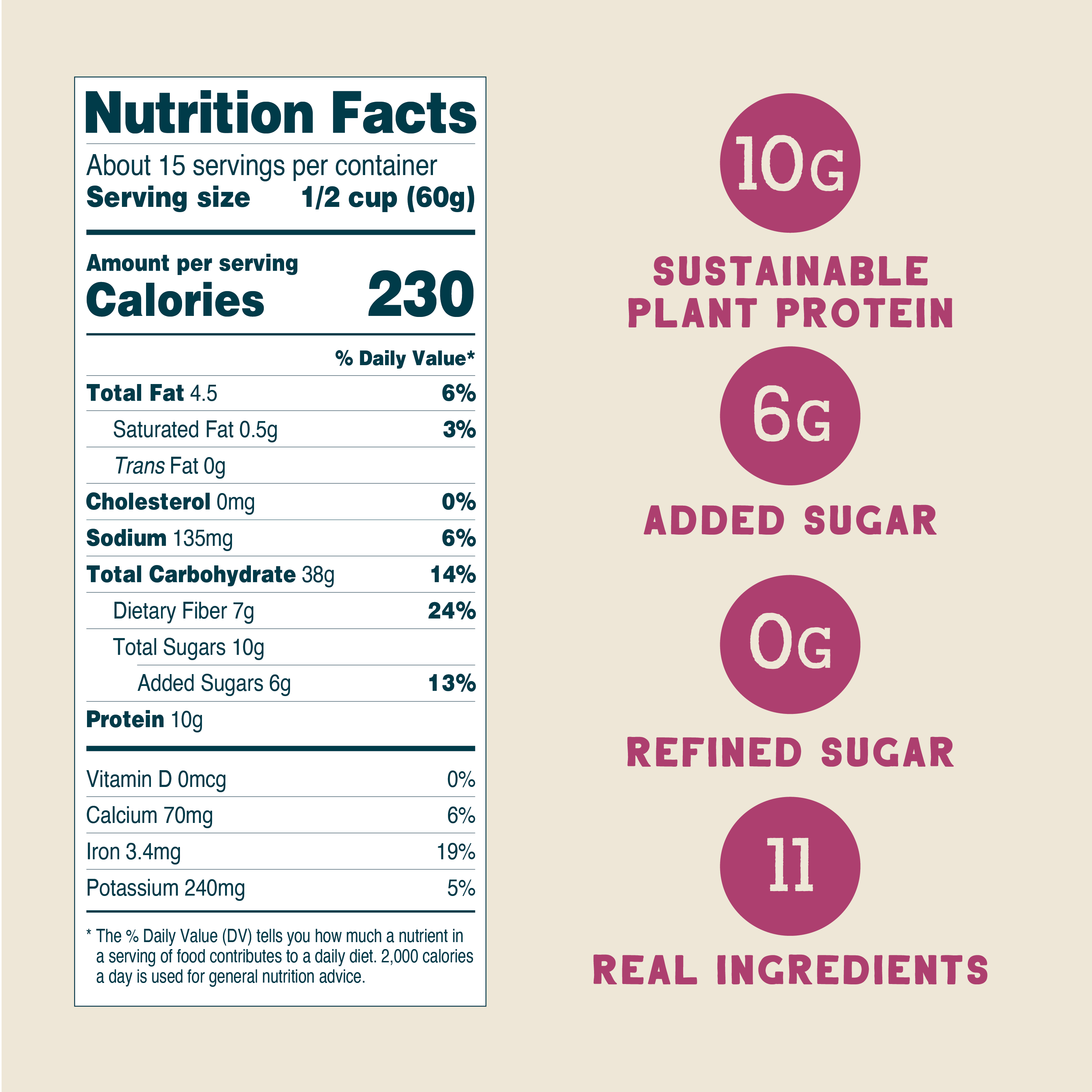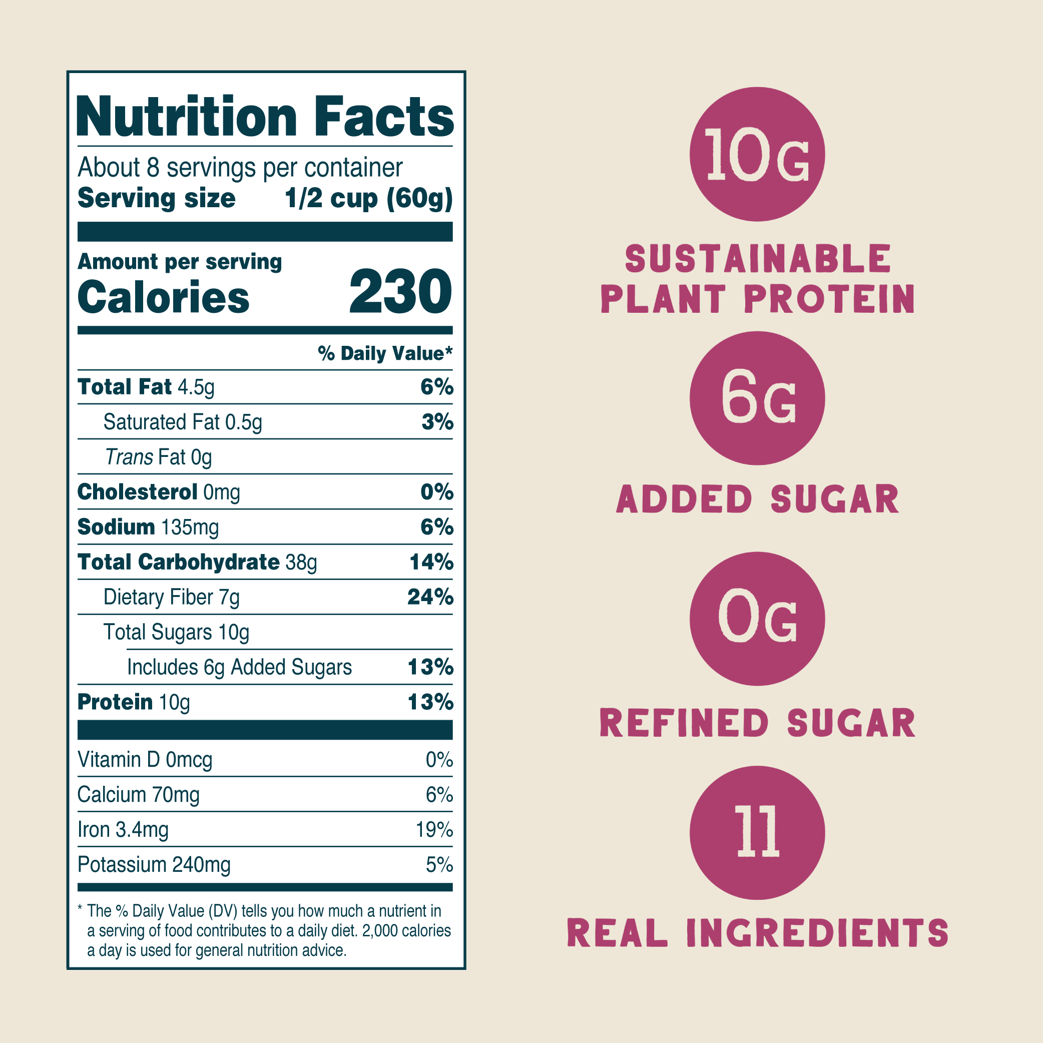 Our cereals are made with 100% real food—no artificial or “natural” flavors, no dyes or preservatives, no weird stuff ever!