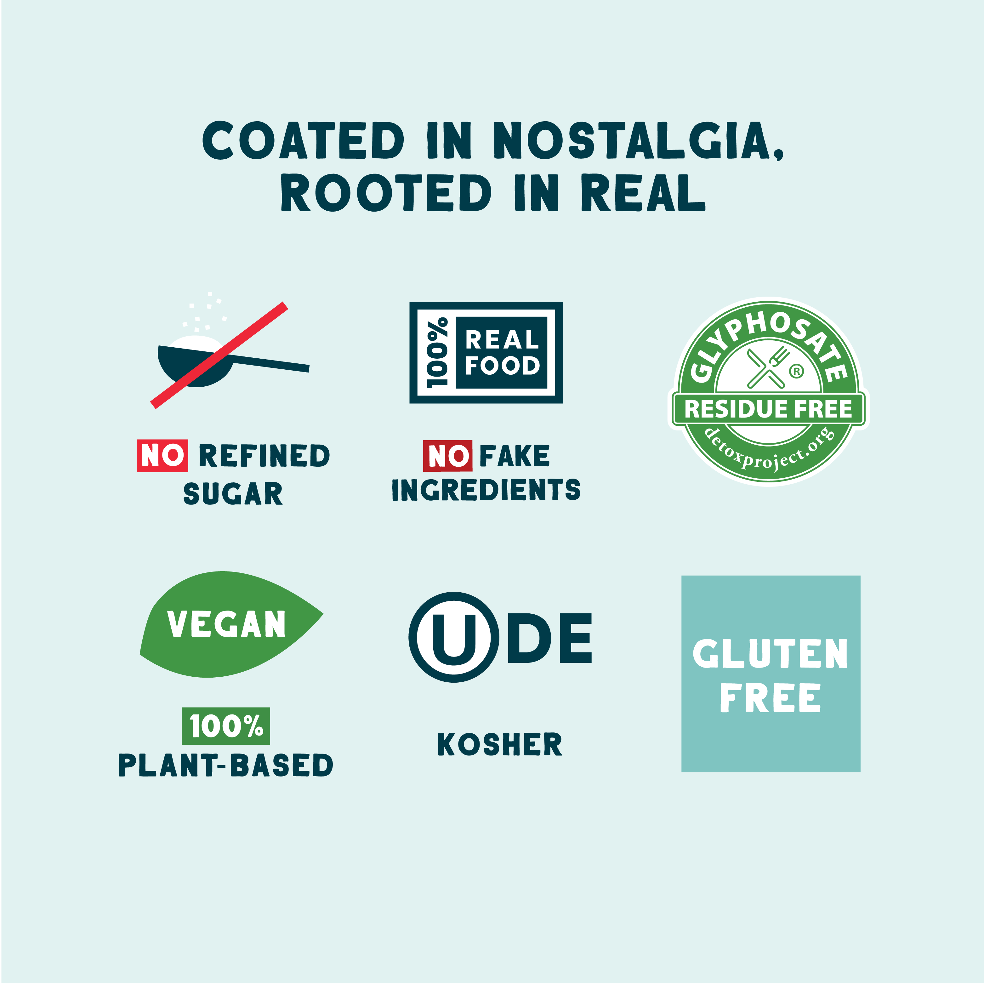 Our cereals are made with 100% real food—no artificial or “natural” flavors, no dyes or preservatives, no weird stuff ever!