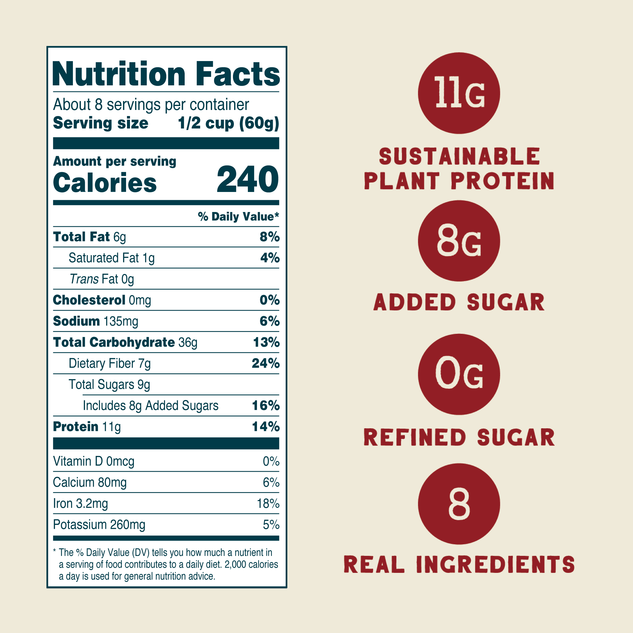 Our cereals are made with 100% real food—no artificial or “natural” flavors, no dyes or preservatives, no weird stuff ever!